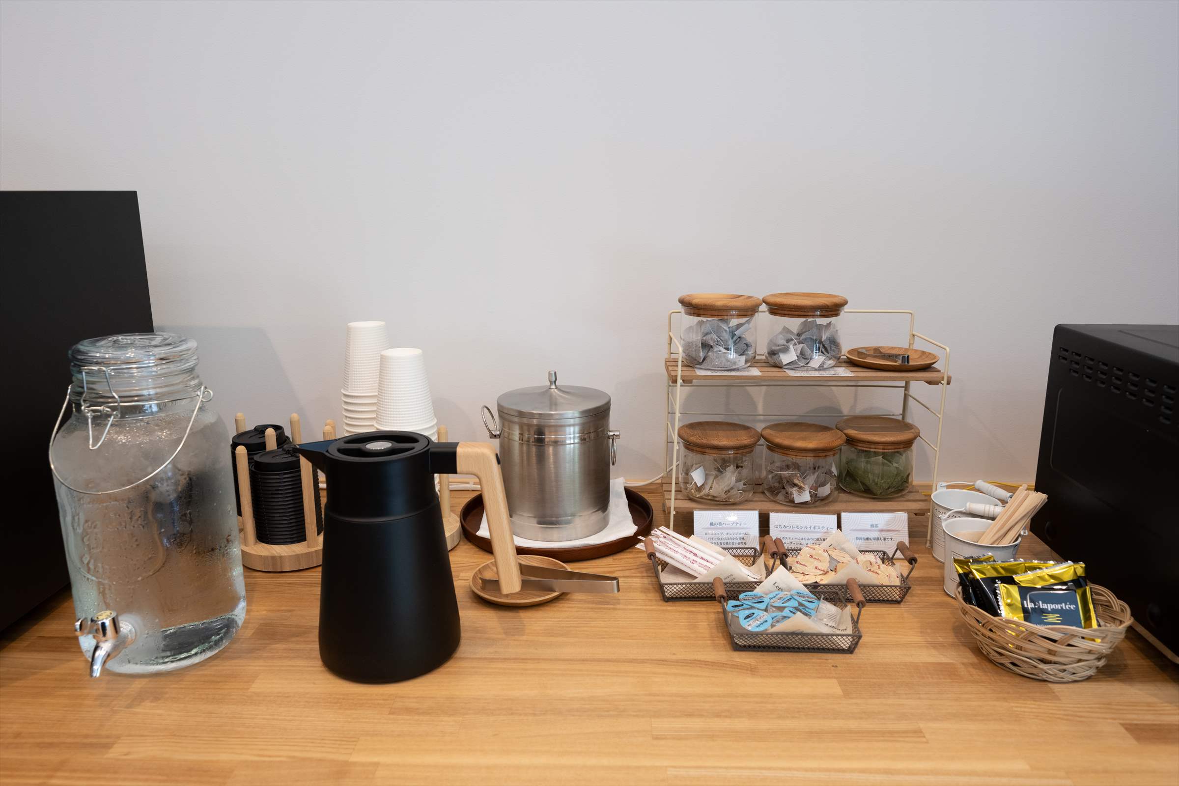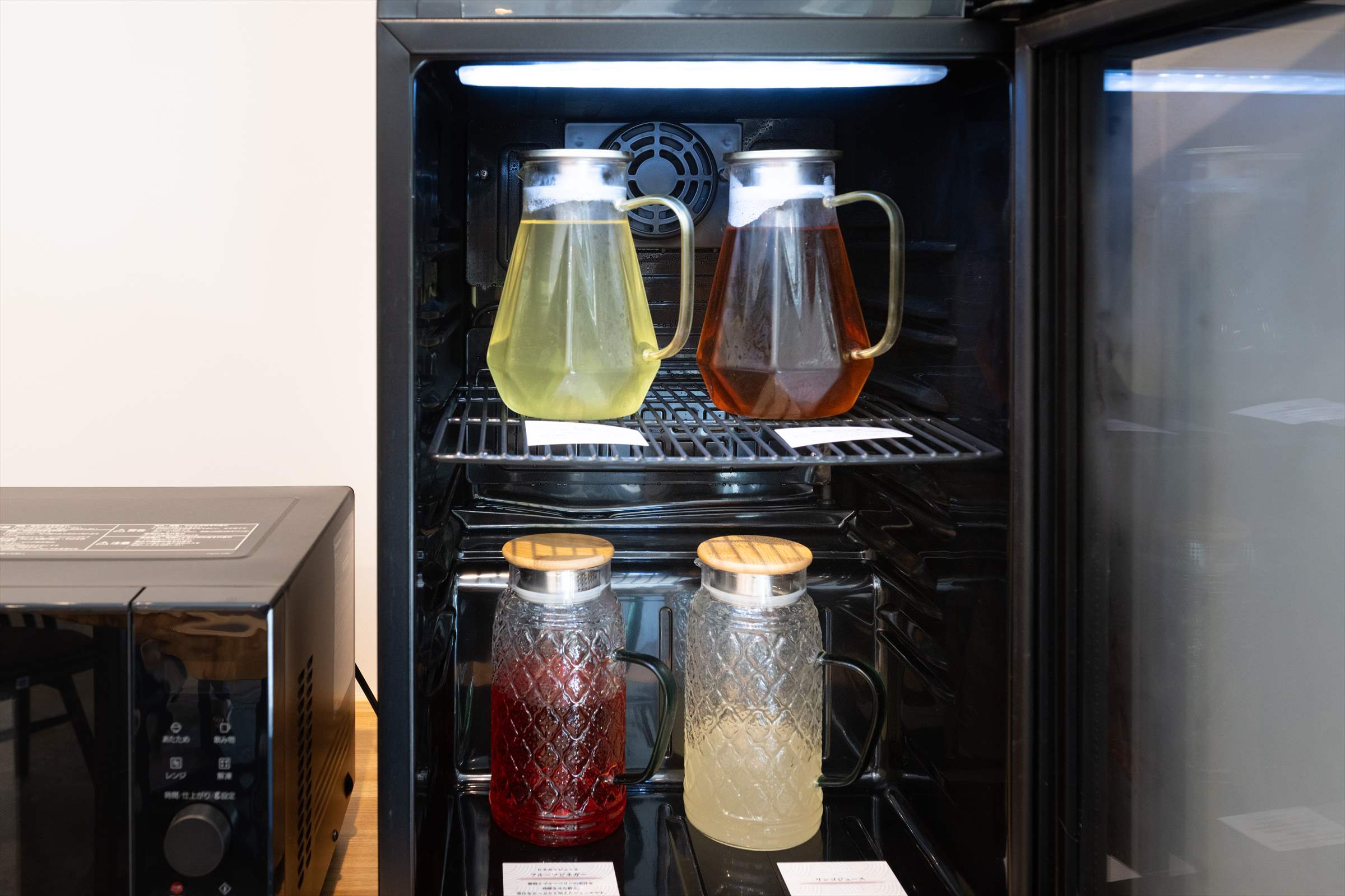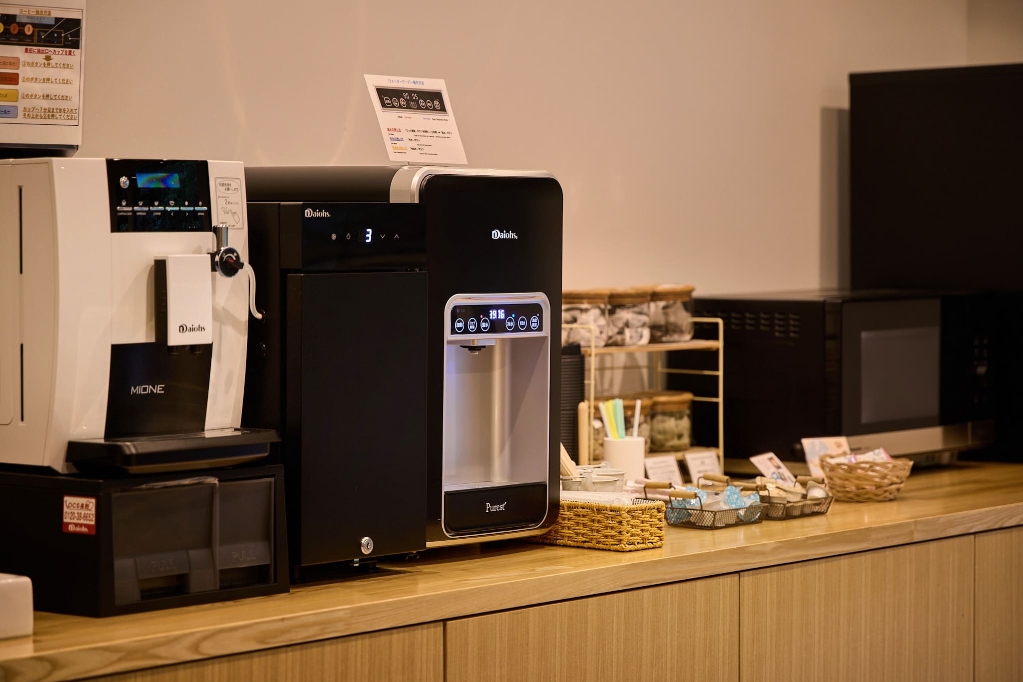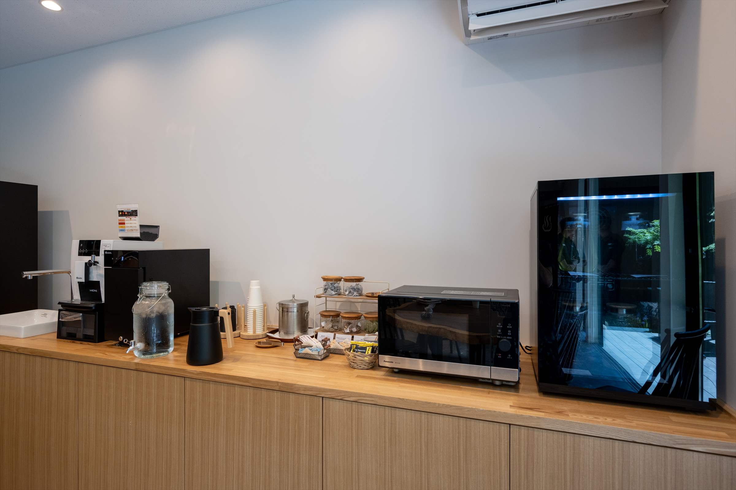 ダイニングにフリードリンクコーナーを設置。コーヒーマシンの本格的なコーヒーや地元名産のお茶、ジュースなどを無料でご用意。電子レンジも設置しております。