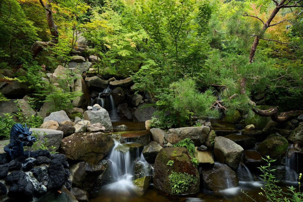 緑屋の庭園は世界的庭園デザイナー石原和幸プロデュース。 石原和幸が英国チェルシー・フラワーショーで金賞を獲得した庭園を再現しました。別所温泉 緑屋の庭園をご案内いたします。