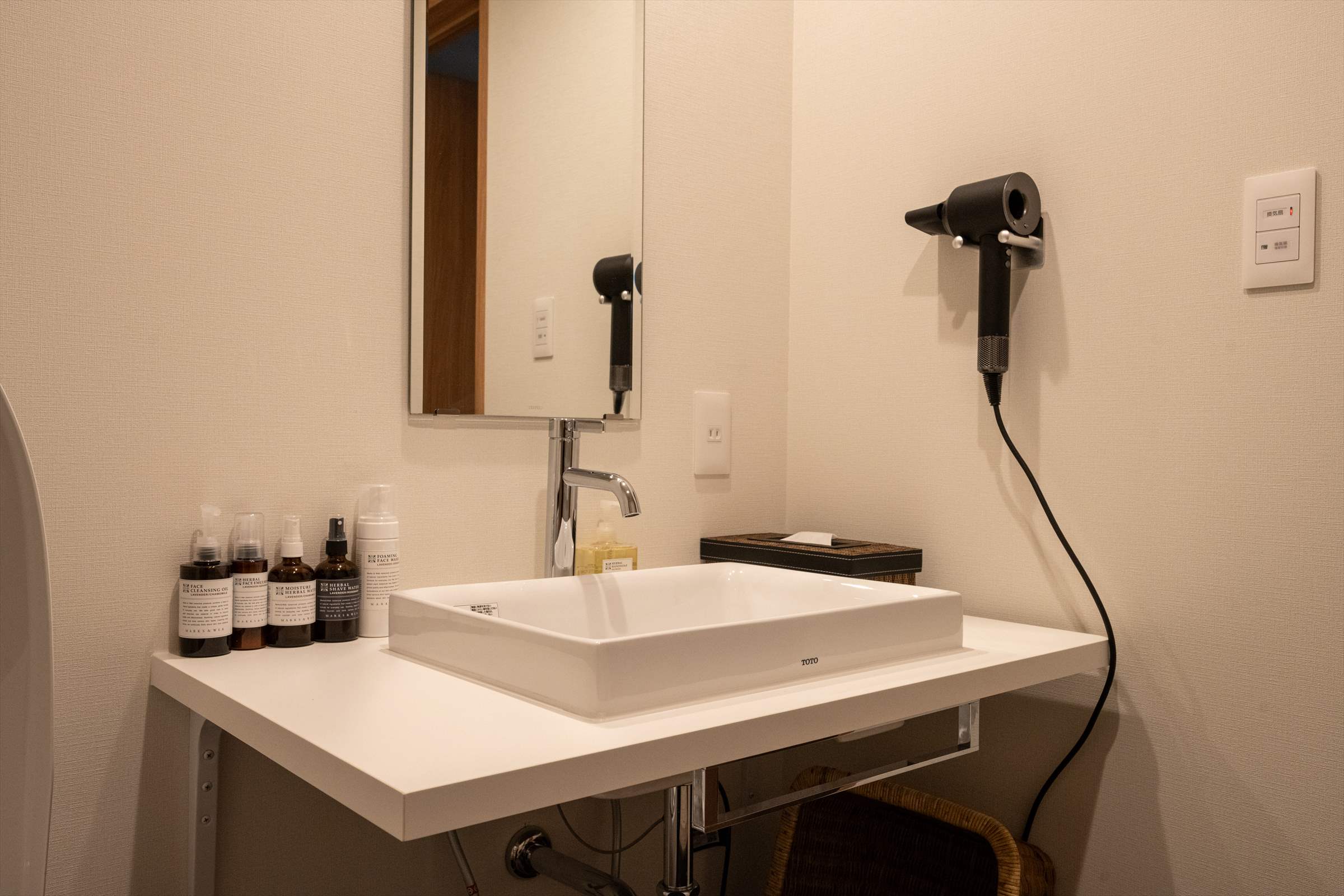 全客室にdyson社のドライヤーをご用意しております。圧倒的な風力で最も速く髪を乾かし、髪本来のツヤを守ります。ぜひお試しください。