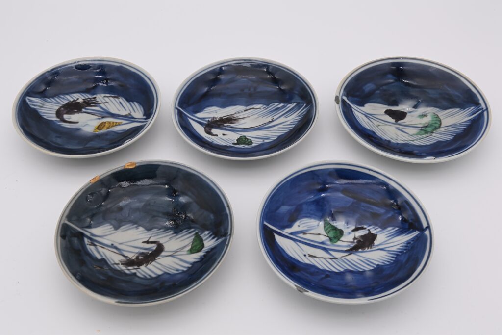 18.絵瀬戸木の葉皿 5客(共箱)
