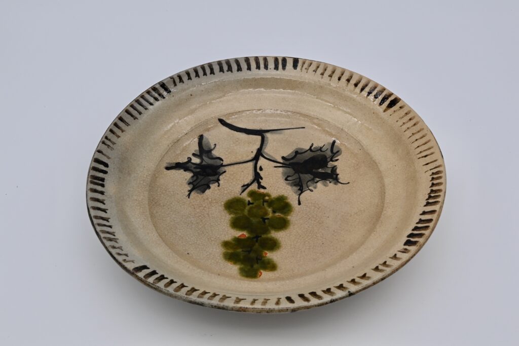 1.織部風葡萄絵平鉢(共箱)