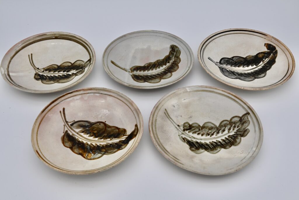 37.絵志野笹文銘々皿 5客(黒田箱)昭和30年頃作