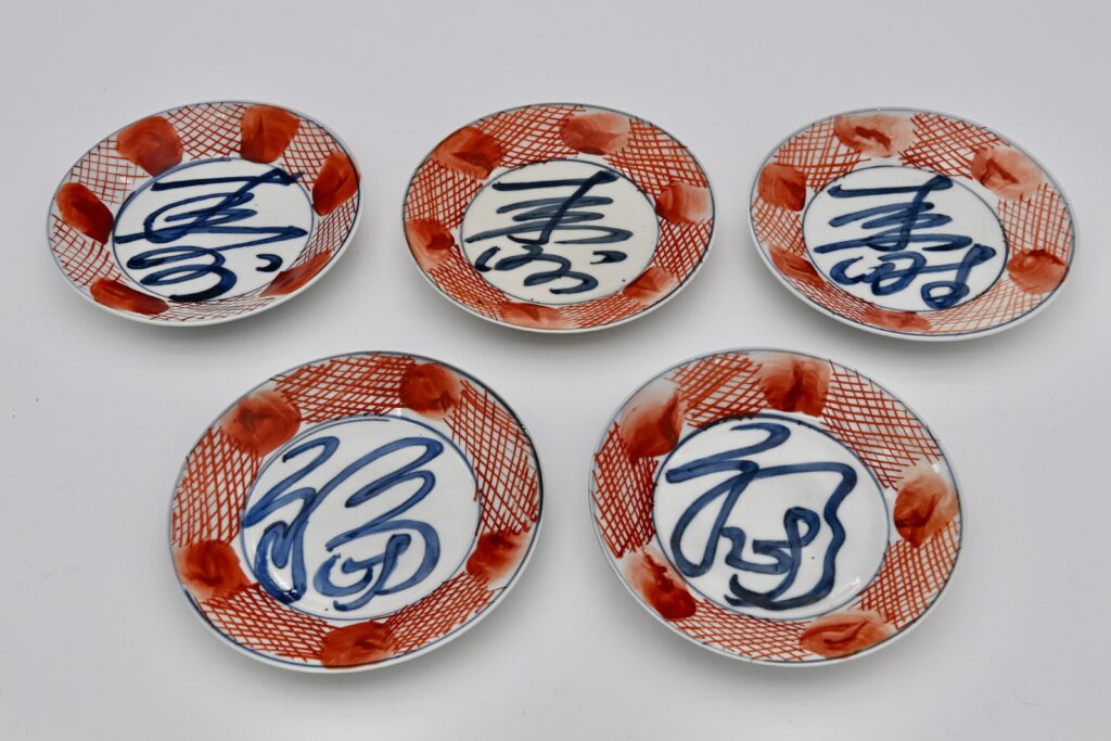 8.赤絵丸紋福寿皿 5客(黒田箱)