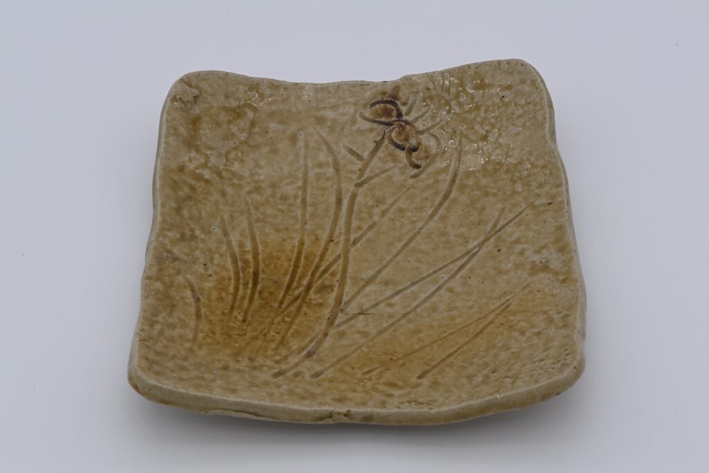 40.志野 草絵 四方鉢(共箱)