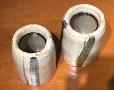 102.絵瀬戸子持縞文麦酒呑 2客(黒田箱)