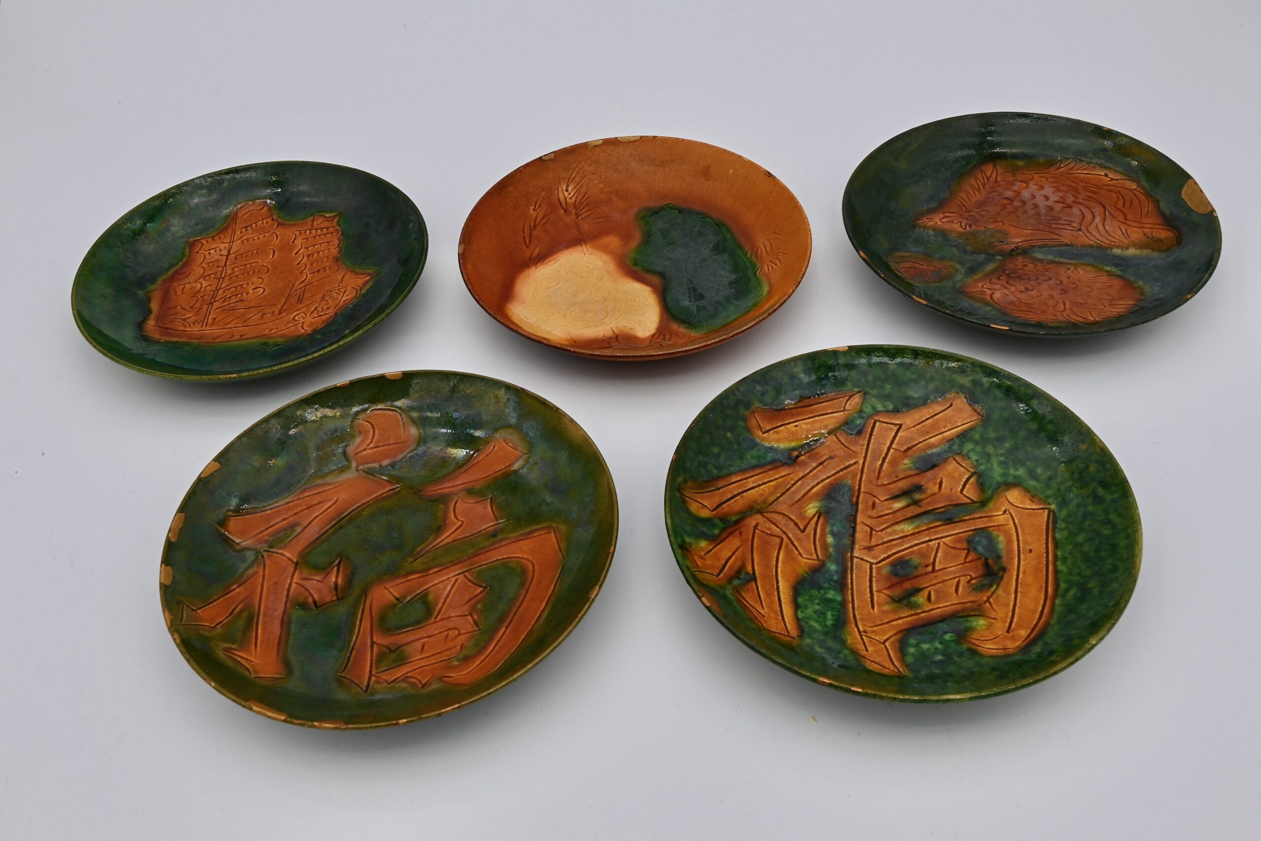 魯山人が「福」の字と絵を彫り、宮永東山が焼成を担当した交趾風の中皿で、二人の共同作品は極めて稀少である。現存する唯一の作例と考えられ、その希少性の高さが際立 つ。また、魯山人は篆刻家としても卓越した技量を持ち、その篆刻作品は非常に貴重であ る。この二つの要素が評価され、2003年に静岡県佐野美術館に出陳されたと考えられる。さらに、本作には魯山人自らが箱書きを施しており、その価値をさらに高めている。