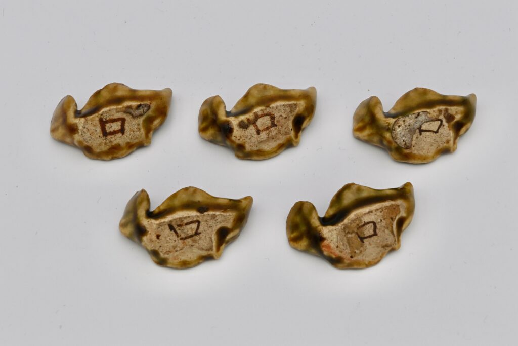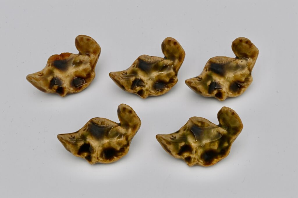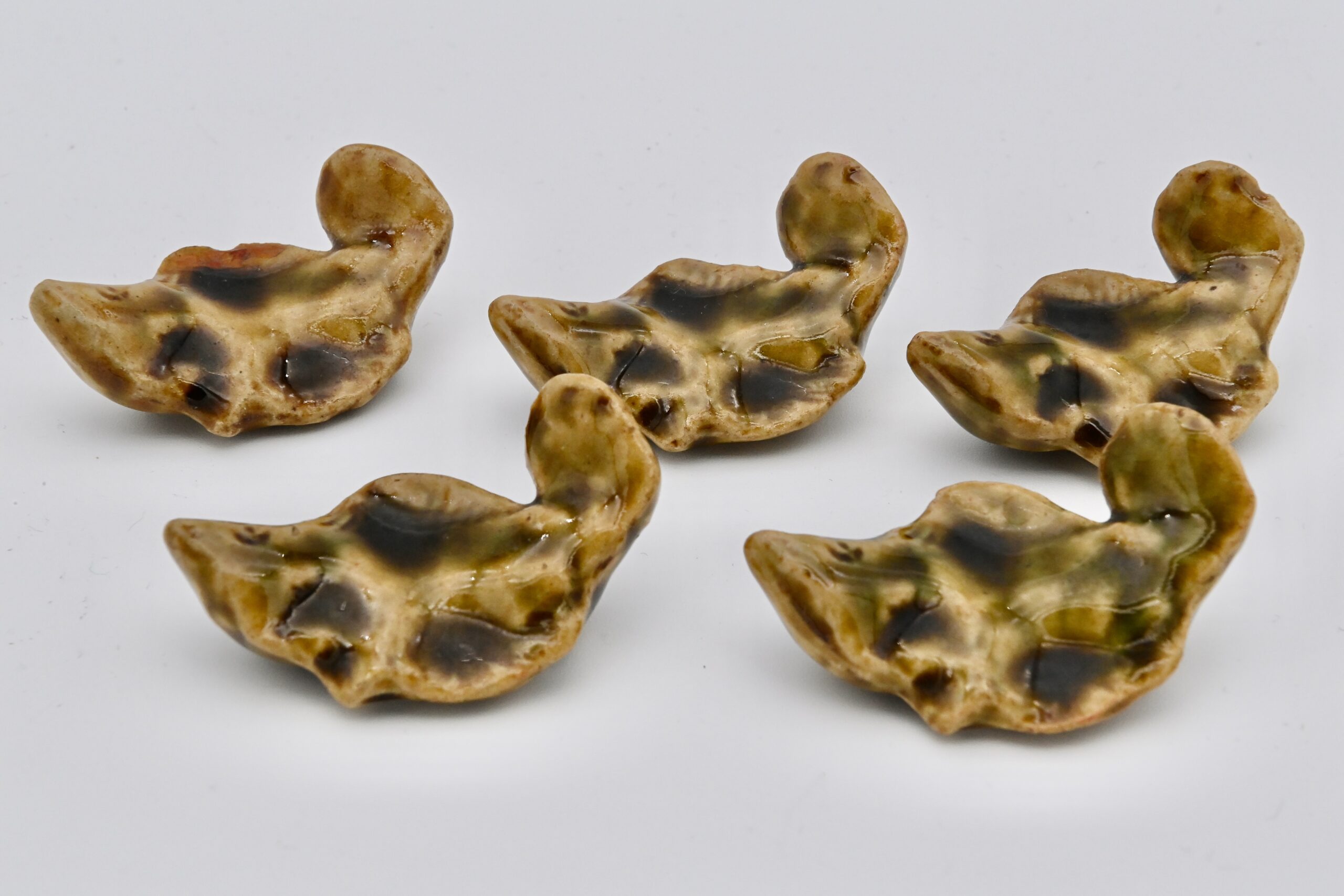 143.織部箸置 魚形 5客(陶々庵識箱)