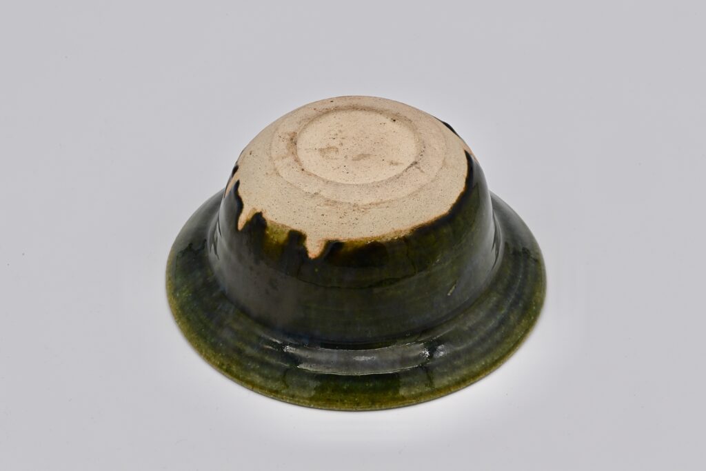 魯山人独特の呼称碧玉釉で透明感のある織部のような美しい釉景です。造形は氏の得意なもので代表作です。
