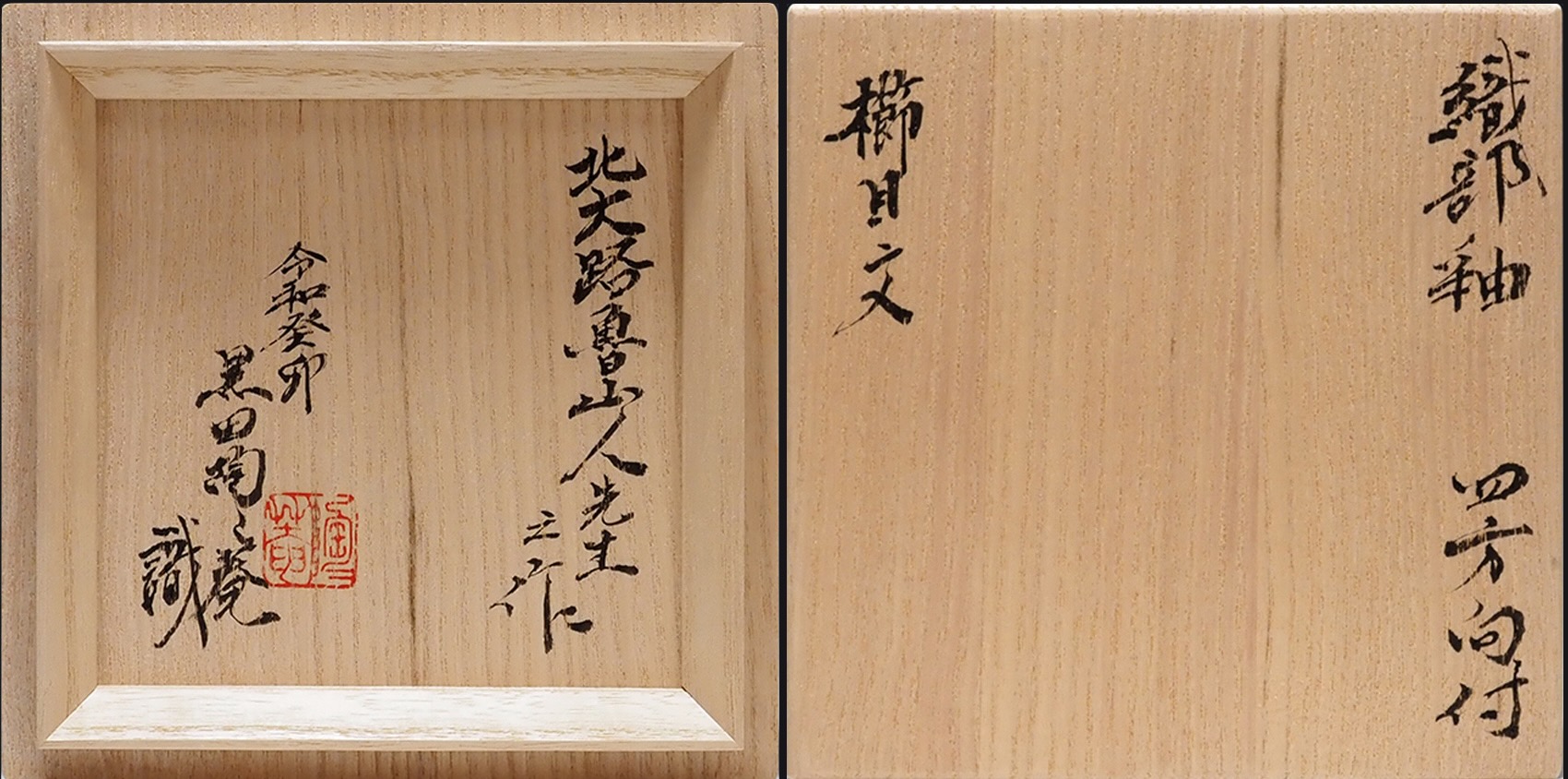 大正13年(1924)京都東山窯の工場長だった「荒川豊蔵」氏と出会い昭和2年(1926)陶房に招き、色々な釉薬等を研究しました。その中で織部釉がとても良い色を出せましたので織部を多く焼きました。1955年から二度に亘り、織部焼での「人間国宝」指定を断っています。晩年は金銭事情が悪く、奨学金も入るのに、国(芸術が解らぬ)が決めるものは受けたく無いのです。この作品は毎日でも使え、用途が豊富で魯山人の素敵な織部作品です。・昭和10年(1935)頃の作品