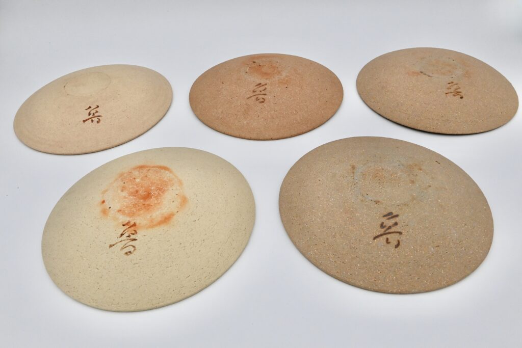 昭和11年に、星岡茶寮を追われてから、製薬会社「わかもと」や、安田火災保険会社等の注文で多数焼かれた、お洒落で軽く、使い易い、魯山人らしい作品です。織部、黄瀬戸、伊賀、瀬戸、鉄釉(渋紙手)と焼き方は5種類有り、それをバラバラに5枚組にしてある物が多く食器の原点とも言われる木の葉の図柄も可愛く、何にでも使え、使い方を色々と考えるのもとても楽しみになる、身近に置ける、素晴らしい作品です。・昭和11年(1936)頃の作品