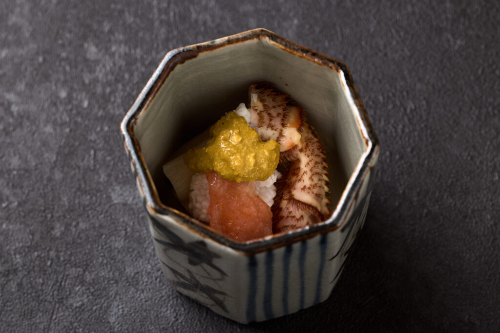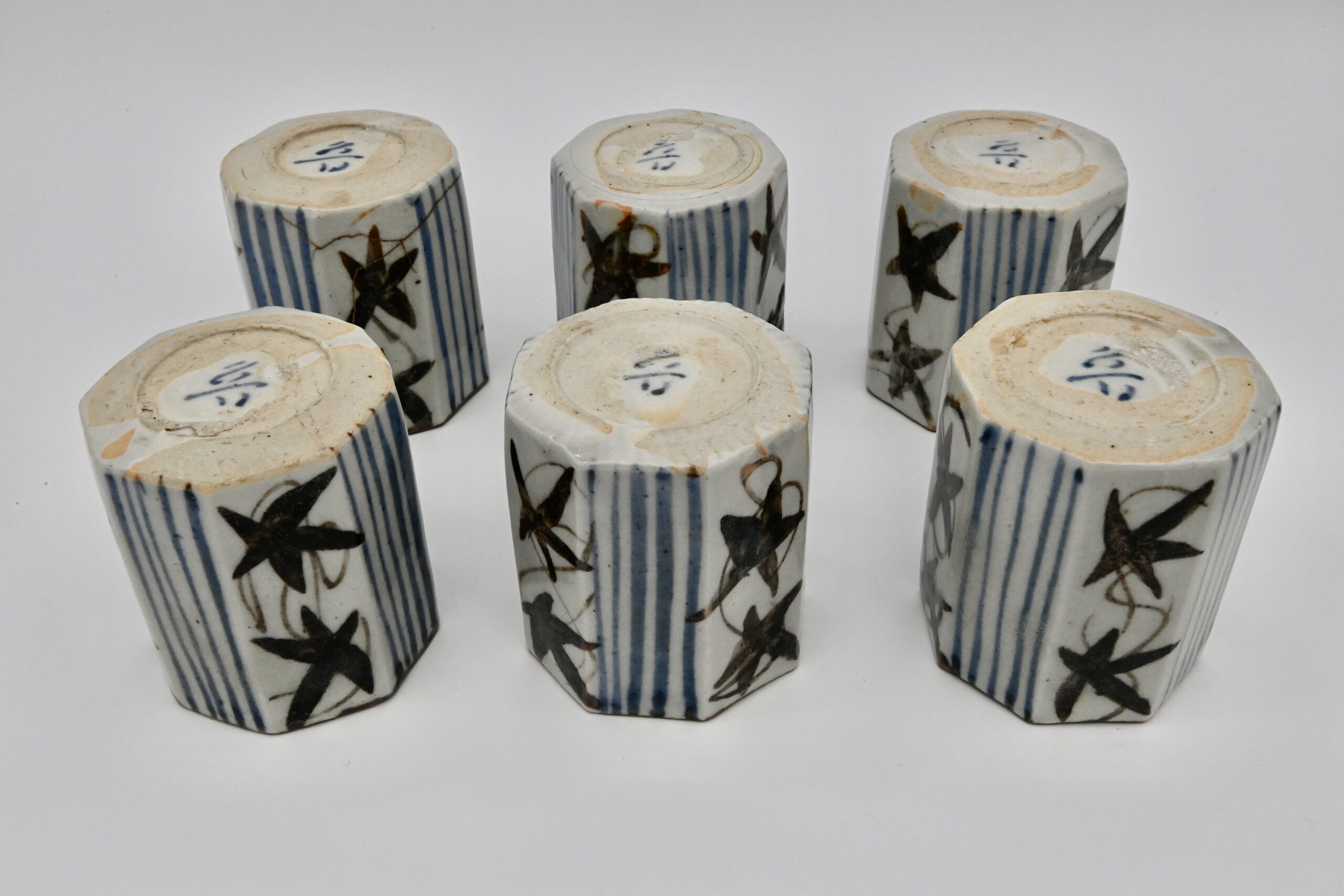 石川県立美術館にて開催された「古九谷の風土が育んだ近代陶芸四巨匠展」にて出陳されたこちらの特徴は、料理を立体的にかつ美しく見せる、八角形の洗練された形状と深さにある。釉薬の独特な色合いや質感は、光の加減で表情を変え、一つ一つに手仕事の温かみが宿る。六客の中にも絶妙な個体差があり、芸術性と実用性を兼ね備えた名品である。