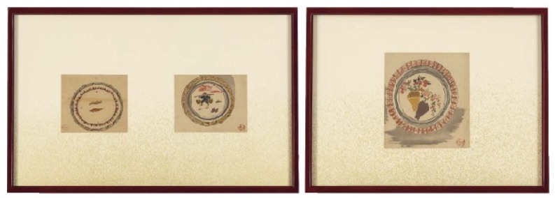275.色絵双魚文額皿画 3点1組(藤原啓 識板付、黒田陶々菴シール)