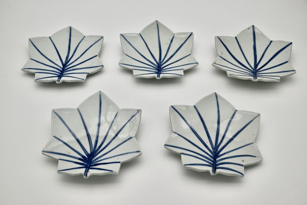 277.染付楓葉平向 5客(共箱)