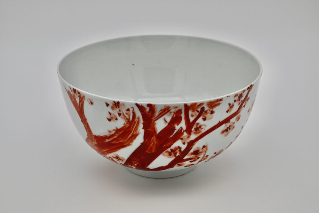 294.色絵紅梅と水仙図鉢(黒田陶々庵識箱)