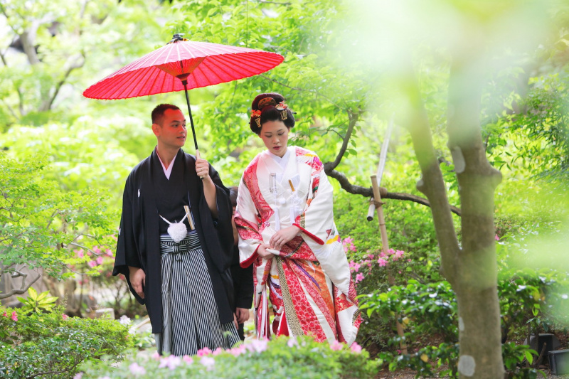 館内の庭園・和室で結婚写真を撮影。おふたりだけで自由に好きなロケーションをお選びいただけます。