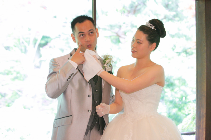 Eさん Yさんご結婚おめでとうございます。あらためて陣屋スタッフ一同よりお祝いを申し上げます。32年前のご両親様の結婚式を挙げられた陣屋で、2世に渡り大切な日をお選びくださいまして本当にありがとうございました!!青葉の庭園を背景におふたりのお姿がとても初々しく輝いていました☆ゲスト1人1人へ書かれたメッセージや、ご挨拶なども含めゲストへの感謝の気持ちがとても伝わってくるものがあり、皆様からのご祝辞や、余興、おふたりのお礼のご挨拶では、ご両家の絆の輪が読み取れステキでした。会場全体がアットホームであったかく包まれたのがとても印象に残っています。ゲストの皆様から笑顔を頂けた事やお二人の笑顔を見れたということが私達陣屋スタッフにとって、かけがえの無いものだと感じる事ができます。ありがとうございます。遠くアメリカでの生活になりますが、末永く仲良の良いあたたかい家庭を築いて下さいね★☆★☆ご実家へお帰りの際には陣屋へ遊びに来てください♪お待ちしています。