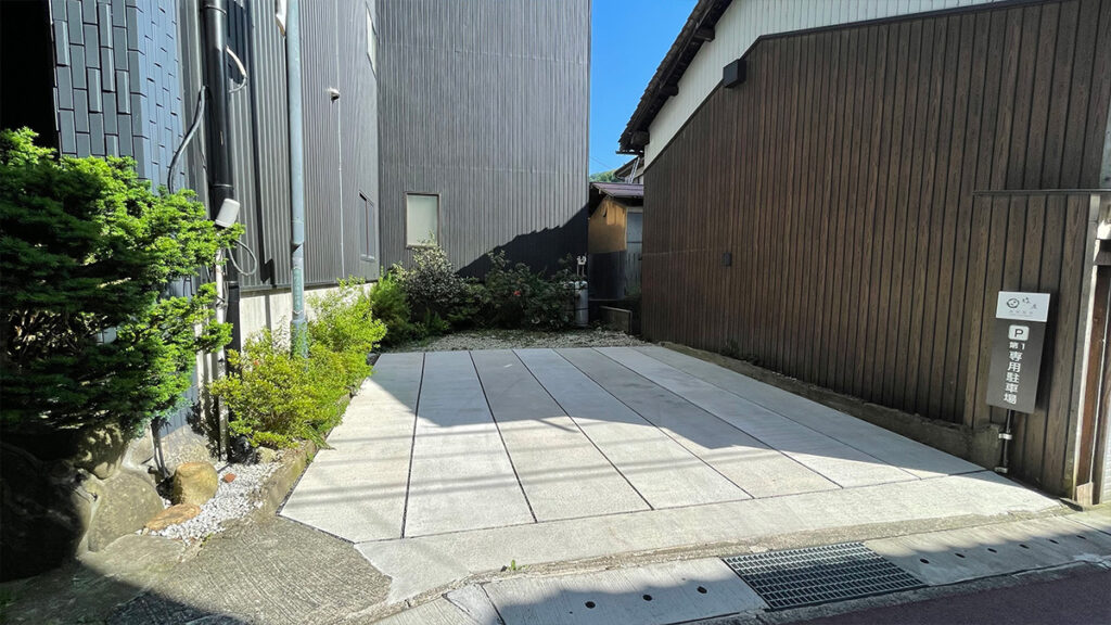 湯村温泉緑屋の専用駐車場は当館建物の横左右に2か所と、近隣に1カ所ございます。10台まで予約不要・先着順で駐車可能です。ご宿泊のお客様は無料でご利用いただけます。