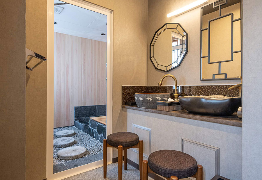 ドライヤー、 ハンドソープ・ボディーソープ・シャンプー・リンス、 ハミガキセット、 カミソリ、 シャワーキャップ、 くし、 タオル・バスタオル、 作務衣、靴下、 雪駄