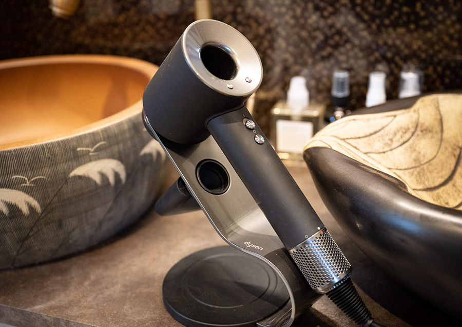 全客室にdyson社のドライヤーをご用意しております。圧倒的な風力で最も速く髪を乾かし、髪本来のツヤを守ります。ぜひお試しください。