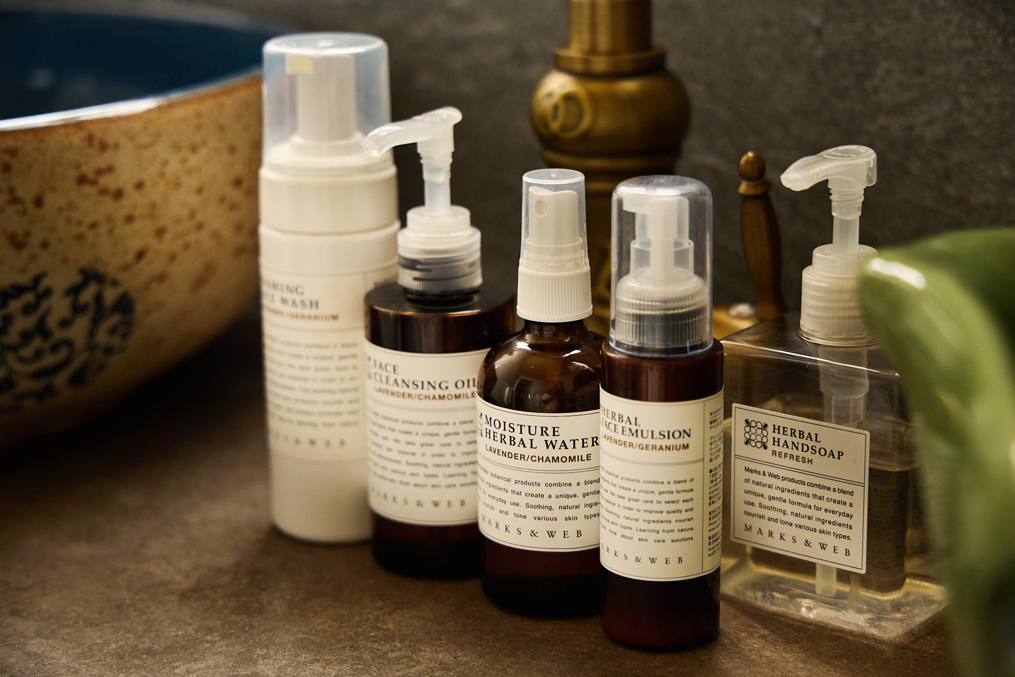 お部屋に「MARKS&WEB」のシャンプー、コンディショナー、ボディーソープを始め、化粧水・乳液等をご用意しております。大浴場なども含め全館「MARKS&WEB」を設置しております。