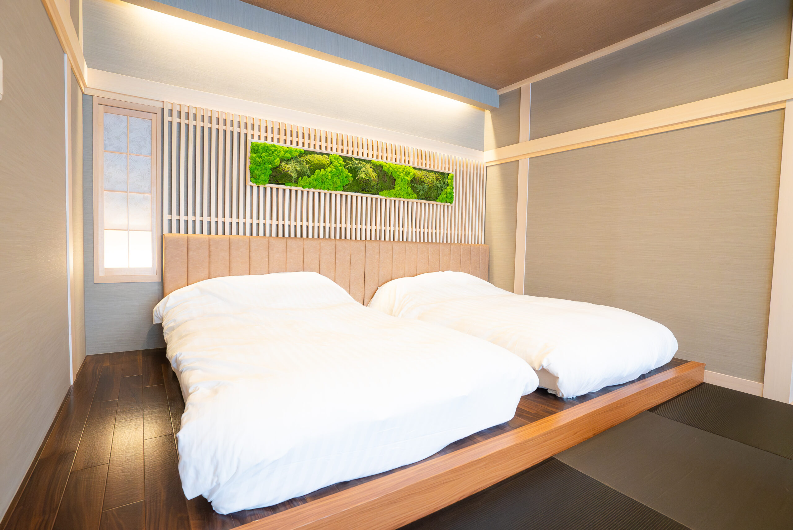 木の温もりあふれる和モダンなスーペリアツインルーム。