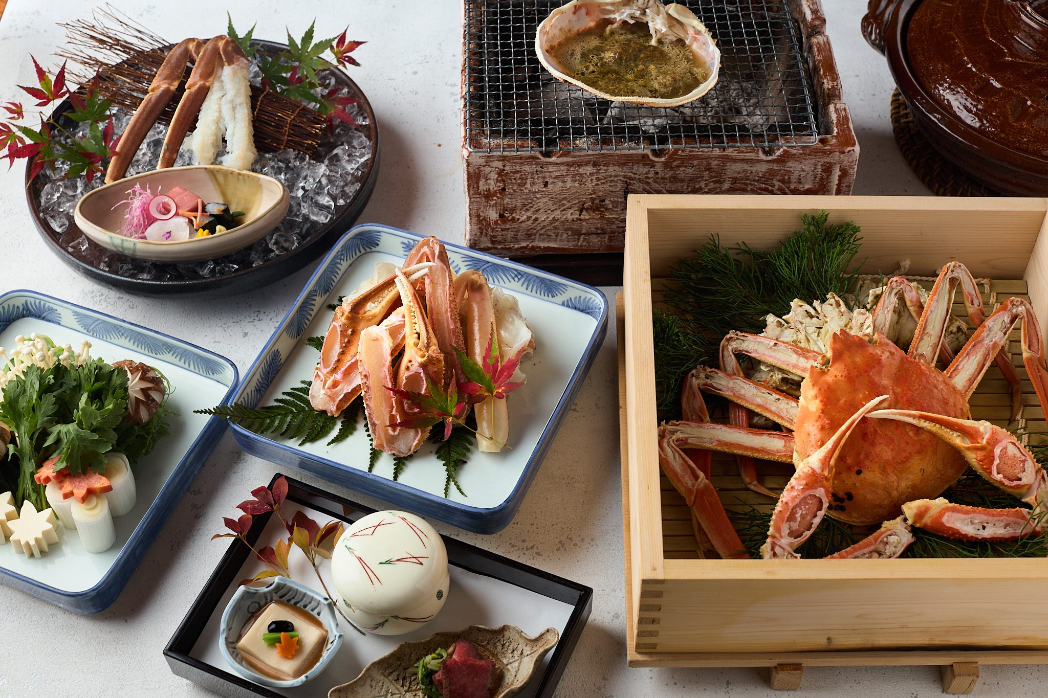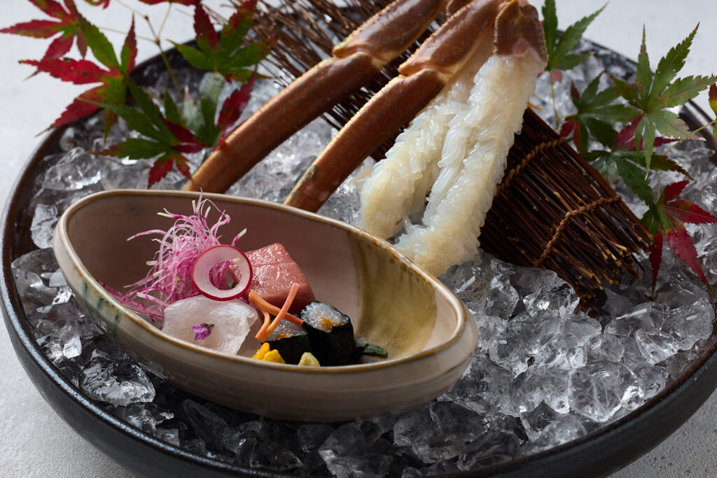当館のかには生きたまま調理するため、カニ本来の味わいを存分に堪能できます。季節限定の蟹グルメを心ゆくまでお楽しみください。