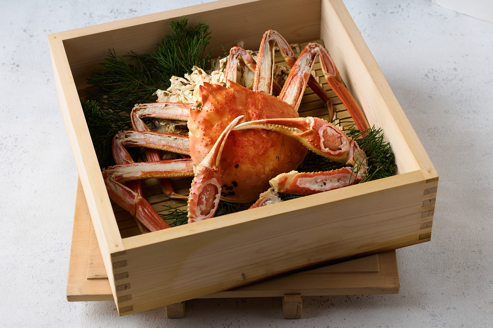 山陰地方の日本海で水揚げされたズワイガニの雄の呼び名です。冬の味覚として知られ、身がぎっしり詰まって上品な旨味があるのが特徴です。地元新温泉町にある浜坂・諸寄漁港の松葉かには水揚げ量日本一。火山灰が堆積してできた漁場は栄養満点、質の良い蟹が多く育ち、食べ応え抜群!